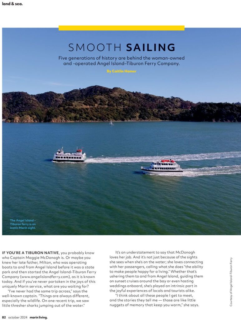 MEDIA MARIN LIVING | OCTOBER 2024 IN HER BUSINESS | INTERVIEW Part 1: Part 2: NORTH BAY WOMAN | FALL/WINTER 2023 MARINE LOG | DECEMBER 2023 MARIN MAGAZINE | Summer Guide 2019 VIDEOS https://angelislandferry.com/wp-content/uploads/2021/11/IMG_0002_1.mp4 https://angelislandferry.com/wp-content/uploads/2021/11/k9SX8t4ZvxNzsN-1.mp4